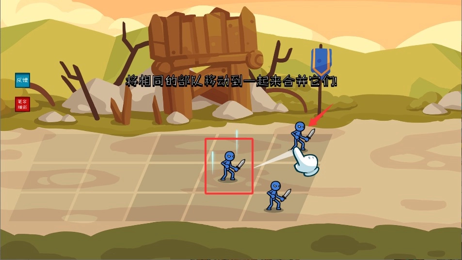1、用手指滑动屏幕就能部署你的火柴人战队,把相同等级的单位合理合并,就能组建出更强大的作战阵容来对抗敌人。