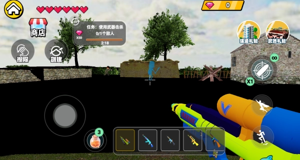 从众多武器当中选择,瞄准目标之后,精准的射击。