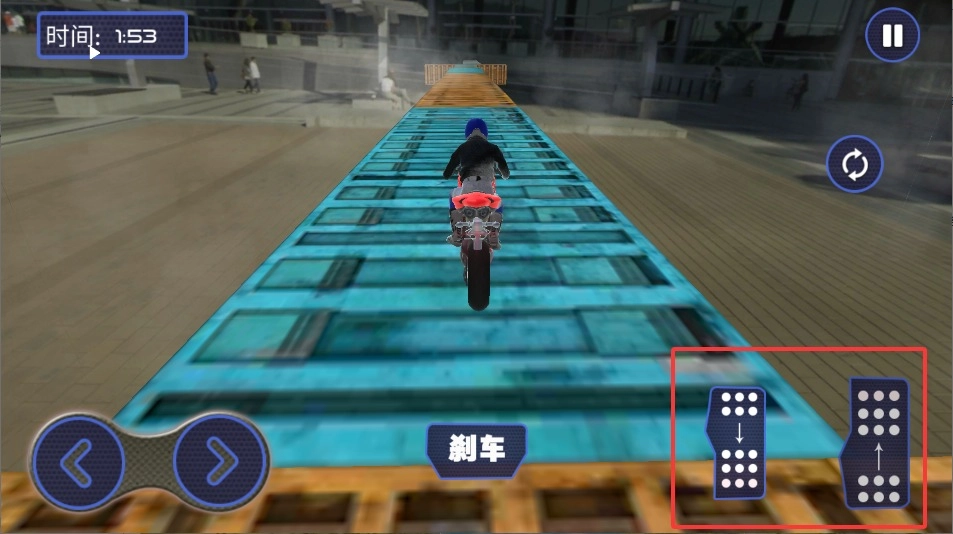 1、进入游戏后使用左侧虚拟摇杆操控方向,通过左右滑动调整摩托艇的行驶轨迹,避开水中障碍物保持平稳前进。