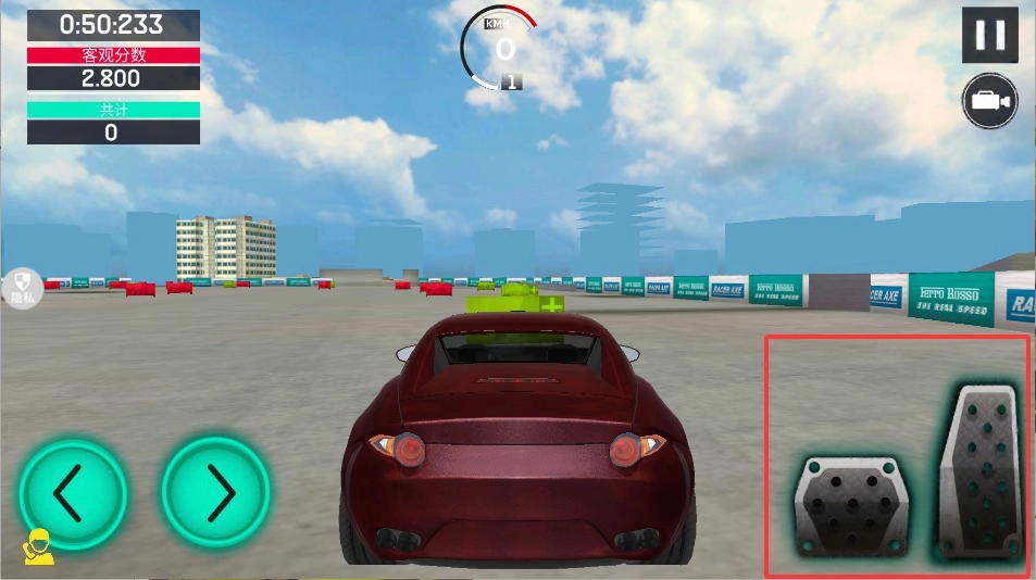 2、右侧踏板键位控制车速,上推加速下压刹车,根据交通状况合理调节,避免急刹导致追尾事故。