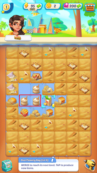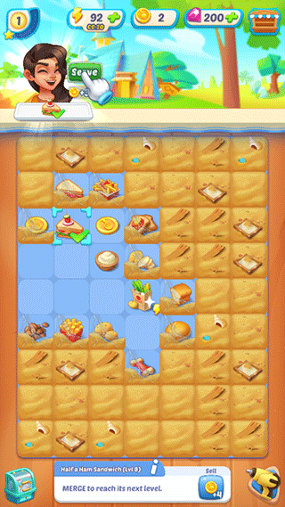 2、有趣的经营玩法,玩家需要通过合并食材的方式制作食物,给玩家们带来不一样的经营乐趣。