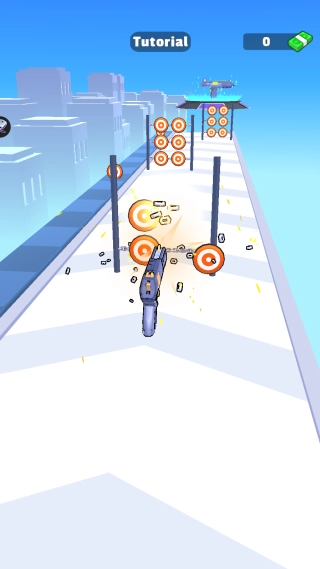 游戏中布置了大量靶子,玩家得精准瞄准射击,靠命中目标来积累积分,这些积分能用来提升武器等级或者解锁新的角色。