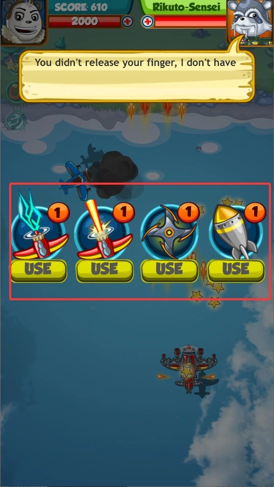 1、左手控制节流阀与滚转,操控战机躲避弹幕,利用机炮与导弹歼灭敌机,触发连击可提升伤害加成。