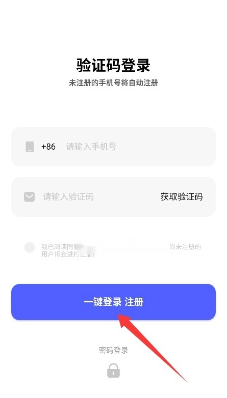 3、输入手机号码以获取验证码,接着输入收到的短信验证码,勾选相关协议后,点击一键登录注册按钮即可完成操作。