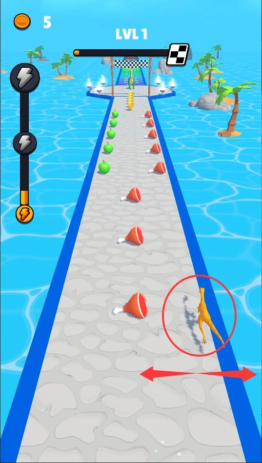 2、在游戏过程中,沿途收集金色鸡腿能够增加金币的数量,当积攒到足够的金币时,就可以解锁霸王龙等新物种,从而提升游戏的趣味性。