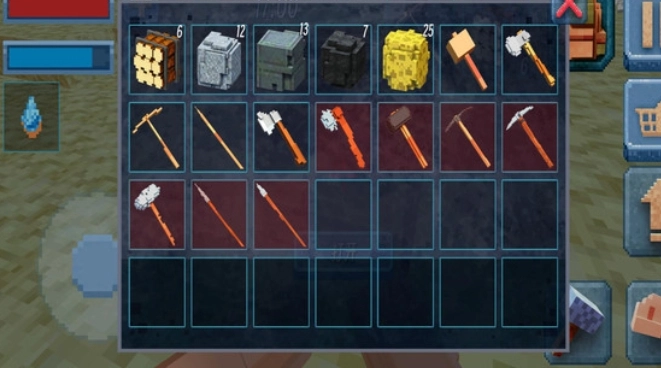 通过收集资源、搭建建筑、制作工具维持生存,同时探索随机生成的地形。