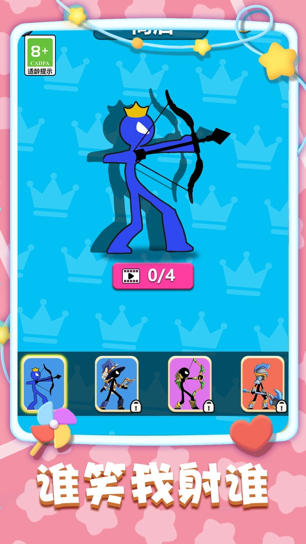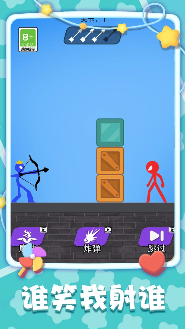 进入游戏后,简洁明了的操作界面会呈现在你眼前。你可以通过鼠标或触摸屏来操控火柴人的射箭方向。