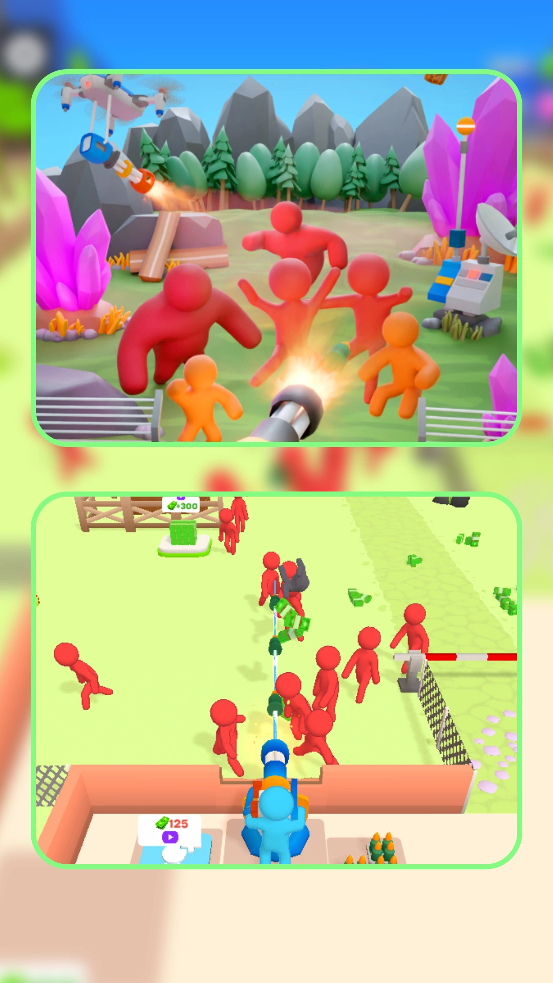 不同颜色的小人对应不同阵营或拥有不同功能,玩家需和队友配合,一起完成任务,或是抵挡敌对阵营小人的干扰。