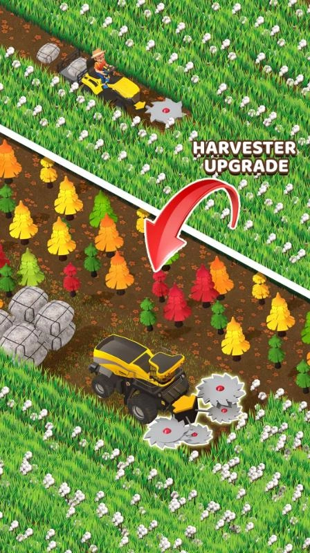 你将从一名籍籍无名的小农夫,一步步成长为掌控一方的农业巨头。这款既轻松又满是成就感的模拟经营游戏,以“割草”作为开端,融合自动化放置系统、农场拓展与工具更新,带来让人欲罢不能的休闲感受。游戏刚开始时,你仅仅拥有一台简易的割草机,得亲自割草、收集物资并整理杂乱的农田。不过,随着时间的流逝,你能够通过完成任务、积攒金币来更新设备、雇佣工人,开启更高效的工具,完成从手动干活到全自动化运营的改变,最终建造出一座现代化的农业王国。