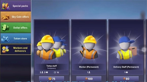 2、接着选择最后一个界面,就可以花费不同数量的金币来购买工人。