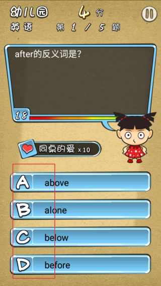完成英语题目时,要依据题目要求挑选出正确的选项,以此来推进游戏进程。