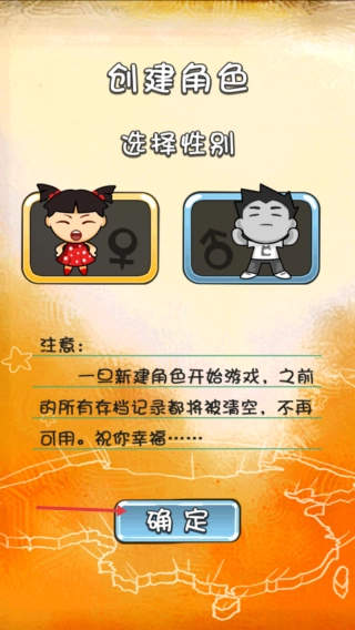选择好角色性别后点击【确定】按钮,留意存档相关提示,随后进入游戏的主进程。