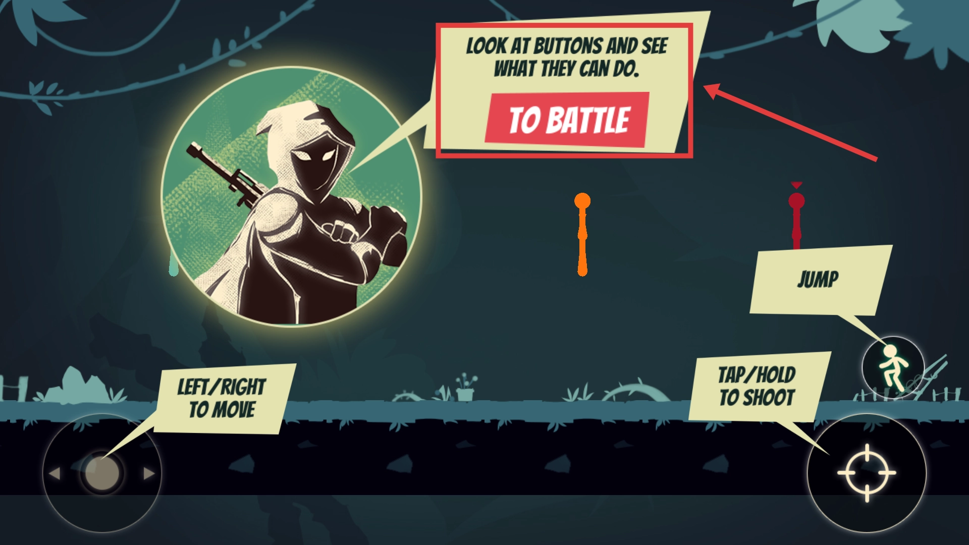 进入游戏后,先熟悉【LEFT/RIGHTTOMOVE】【JUMP】等按钮的功能,再点击【TOBATTLE】开启战斗,这样能为后续操作做好准备。