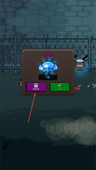当出现礼物弹窗时,点击【ADS】-【500%】按钮就能获得更多钻石奖励,帮助增强后续的战斗能力。