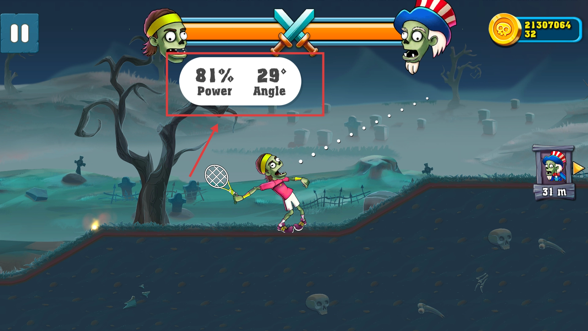 战斗时留意屏幕上显示的【81%力量】和【29度角度】,通过调整射击参数来精准击中对手,从而提高攻击效率。