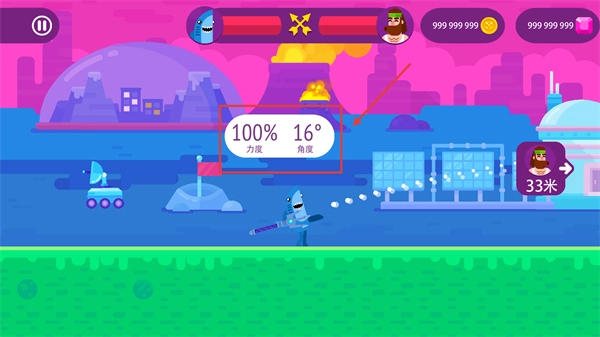 战斗时留意【100%力度】和【16°角度】这两个数值,再依据对手的位置进行细微调整,以此提高射击的精准度。
