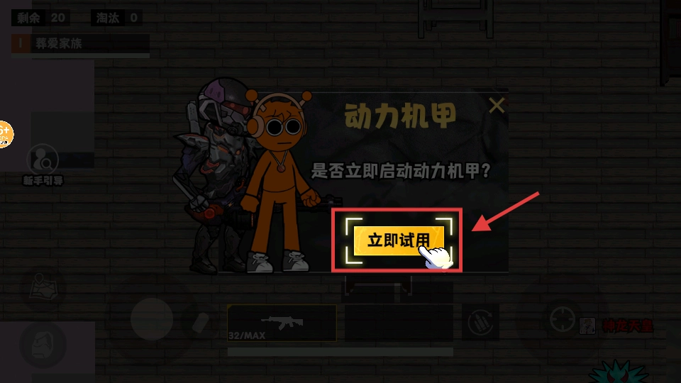 当启动动力机甲的提示出现时,点击【立即试用】按钮,即可获得机甲带来的战斗能力增强效果。