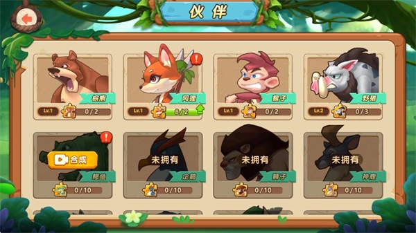 包含松鼠射手、兔子卫士等多种个性鲜明的小动物,每种都有独特技能与外观,收集过程充满惊喜,不同动物组合还能触发专属羁绊效果,丰富阵容构建思路。