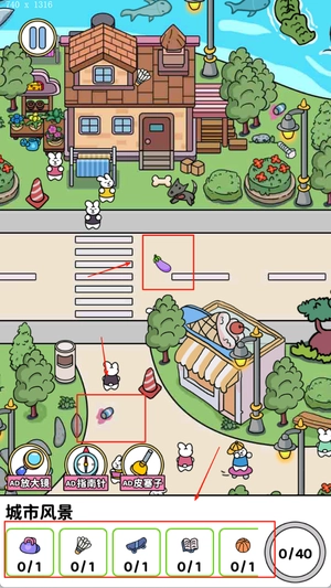 2、下侧为需寻找的物品,游戏内配备各类道具,可助力通关。