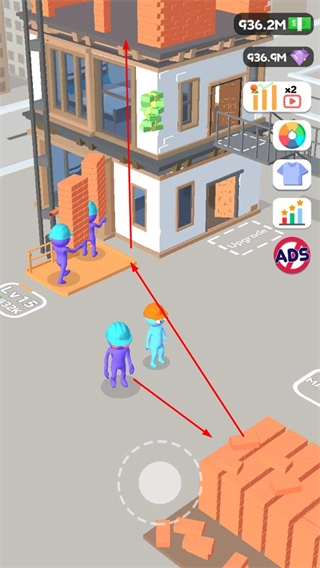 指挥工人搬运砖块,不断建造房屋,拓展房产经营规模,加快建筑进程。