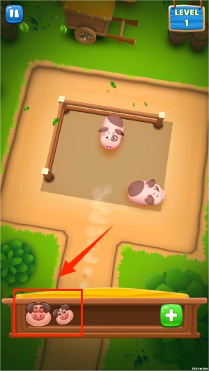 3、点击后可以进入下方的空格处,两只小猪即可消除。