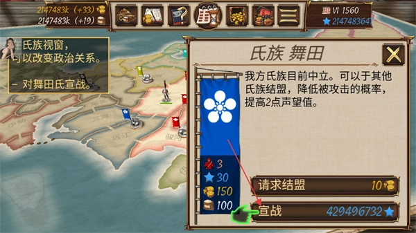 在氏族界面里,能够向其他氏族宣战,比如向舞田氏宣战,从而引发军事冲突。