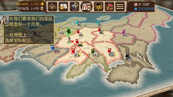 在地图上选中军队标记,指挥军队进攻其他氏族,拓展领地。