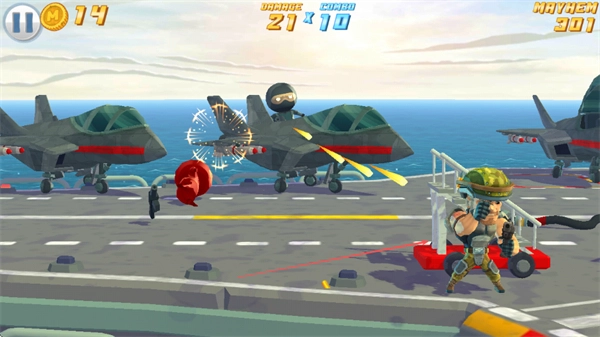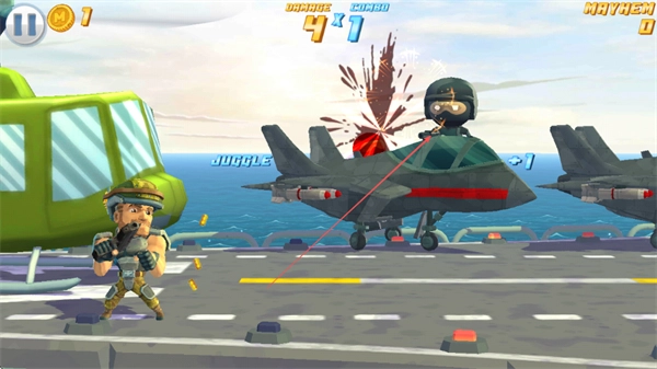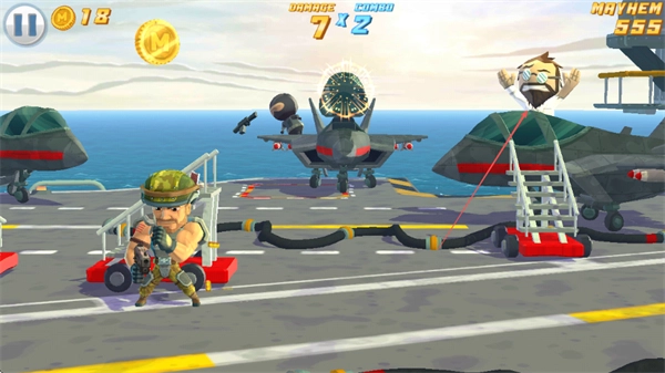 操控角色前往各个不同区域,射击更多的战机与敌人,收集金币,以此提升MAYHEM值。