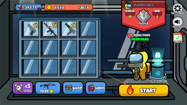 在武器界面解锁枪械,装备好后点击START进入游戏,准备投身太空大逃杀。