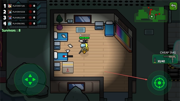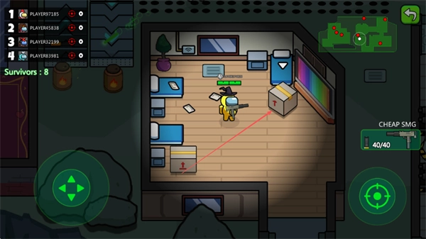控制角色在房间里移动,靠近箱子来获取武器资源,借助地图熟悉场景的布局。