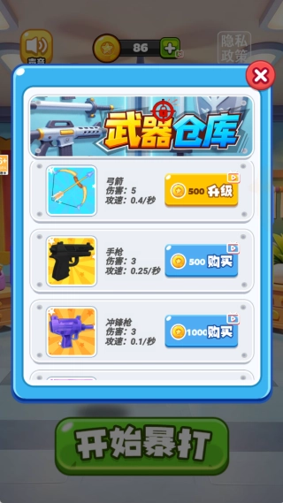 使用金币不仅可以解锁全新的武器,还能对已持有的武器进行强化,从而进一步增强其破坏效果,为玩家带来更为出色的战斗体验。