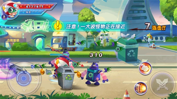 看到“注意!一大波怪物正在接近”的提示后,就准备迎战吧——点击右下角的攻击按钮对怪物发起普通攻击,这样就能累积连击数了。