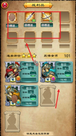 3、增加战场互动内容:招募并培养不同类型的小兵一同作战,和刘关张等著名将领一起奋勇杀敌。每场战斗都有一定概率获得稀有装备,感受割草式战斗与装备掉落的畅快体验。