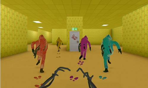 碰到彩色怪物时,别慌张乱跑,仔细观察脚印的颜色——红色、黄色、紫色、绿色分别对应不同的移动区域。只要踩在和脚印同色的区域,怪物就很难发现你。要是遇到标有“EXIT”的门,得先确认周围安全了再靠近。