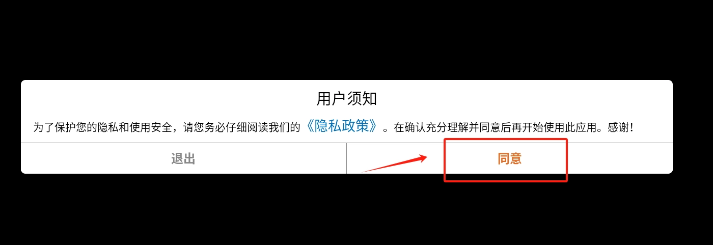 1、游戏并打开游戏,点击同意。