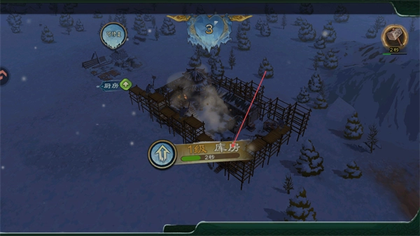 3、选定建筑区域,升级并修建1级库房,增强资源存储能力,推动建筑建设进程。