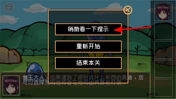 4、剧情推进后,跟着红色箭头的指引走,点击提示选项简单看看,了解游戏玩法的指引内容,以便明确接下来的操作方向。