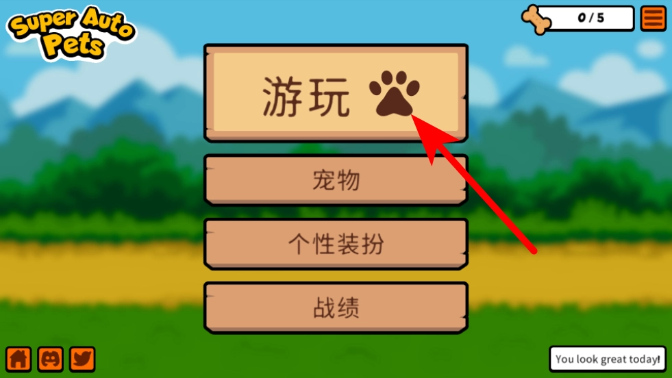 1、在Super Auto Pets游戏主界面,点击最上方的游玩按钮,进入模式选择页面。