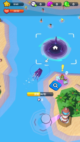 玩家操控章鱼怪兽完成移动与吞噬动作,借助触手的伸展和收缩来达成近距离抓取,遇到远处目标时则能发射触手进行缠绕拖拽。
