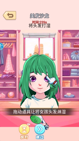 洗脸环节采用模拟真实的交互方式,当成功完成洗脸后,公主便会露出舒适的表情,同时解锁后续的化妆工具。