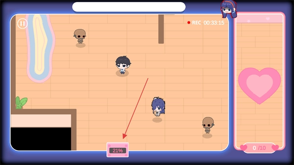 1、操控角色在房间内移动,推进救援进程,界面会显示进度百分比。