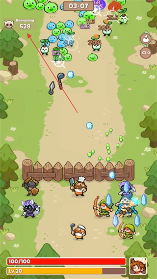进入战斗场景后,操控已部署的角色对怪物发起攻击,同时留意左上角显示的剩余怪物数量,以此推进当前关卡的进度。