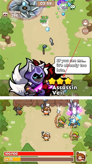 3、战斗过程中,玩家可通过持续升级来获取角色,再将这些角色进行合成,从而得到最终的三星形态角色。利用该角色的能力对剩余怪物发起攻击,能够有效提升战斗的推进效率。
