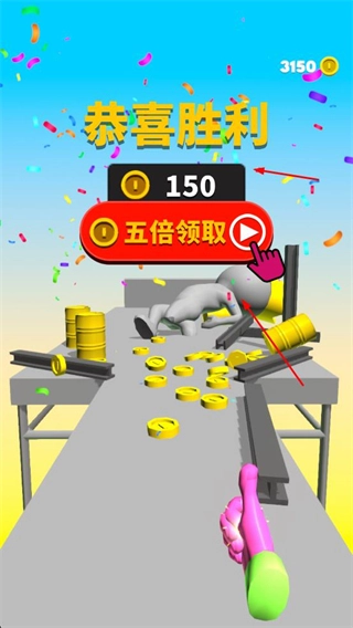 2、关卡胜利后领取金币奖励,也可观看广告获取五倍奖励,积累资源用于后续关卡或皮肤解锁。