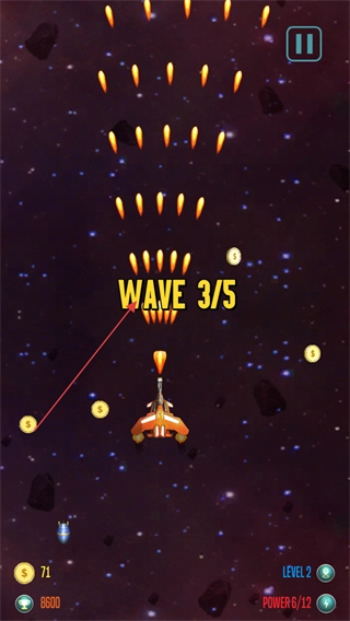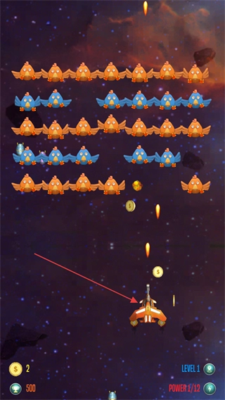 1、在屏幕空白区域滑动手指,可操控飞机进行上下左右移动,以此避开小鸡发射的导弹,并对它们发起攻击。