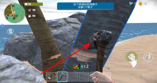 3、用得到的斧头去砍棕榈树,获取椰子之类的资源,这些资源能满足角色在荒岛上的生存所需。