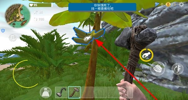 4、在荒岛的丛林里搜寻香蕉树,采摘香蕉来缓解角色的饥饿感,保障角色的生存状态,从而能够继续进行冒险。