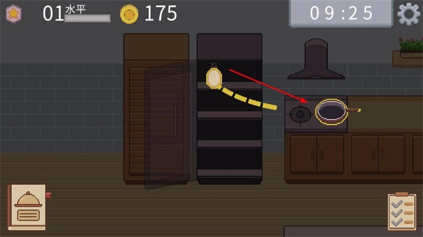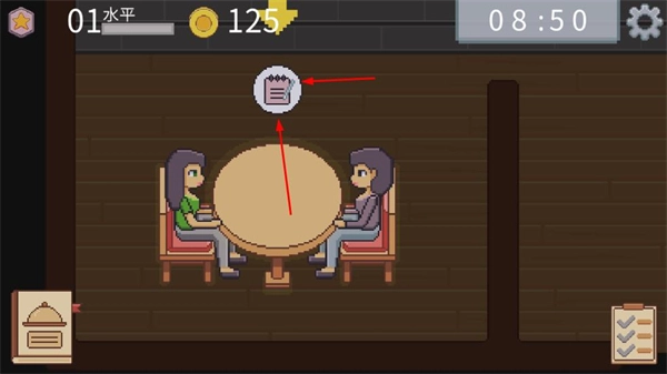 采用像素画风打造游戏画面,餐厅场景、食材、顾客形象等均以像素形式呈现,风格简洁可爱,没有复杂的视觉元素,营造出轻松舒适的经营氛围。
