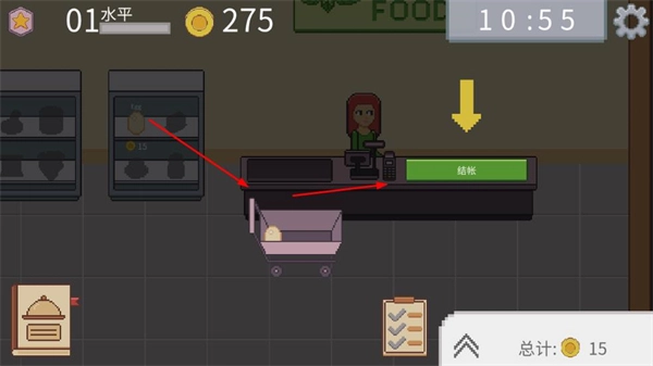 3、购物后前往收银台结账,完成交易获取收益,积累金币资源。