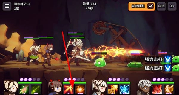 1、开启自动挂机功能,角色在哥布林矿山等场景自动参与战斗,无需手动操作,轻松推进游戏进程,还能节省时间。